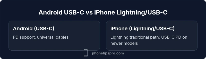 Charging ecosystems have grown more complex as devices come from different camps. Do android and iphone use the same charger? The short, honest answer is nuanced: not universally. Android devices have widely adopted USB-C with Power Delivery for fast charging, while iPhones historically used Lightning and are moving toward USB-C on the latest generations. This means that you can physically connect some cables across devices, but the underlying charging protocols, safety features, and device negotiates differ. According to Phone Tips Pro, sticking to the charger designed for your device typically yields faster charging, cooler operation, and preserved battery health. In mixed households, a couple of high-quality USB-C PD bricks and a small set of USB-C to Lightning cables can reduce clutter. Remember: compatibility hinges on connector type, negotiated power, and firmware support.