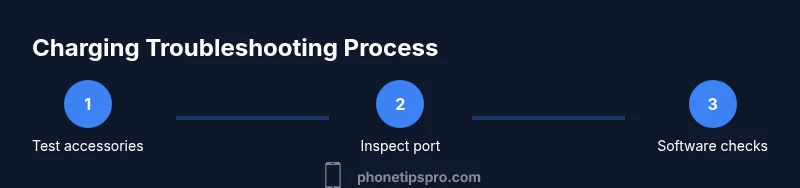 Charging issues usually fall into two buckets: hardware faults (port damage, cable wear, defective charger) or software glitches (charging controller issues, iOS bugs). If your iPhone shows a charging symbol when plugged in, but the battery doesn't increase, that points to a software or calibration issue rather than a dead port. According to Phone Tips Pro, starting with simple, repeatable checks helps you identify the likely cause without unnecessary tinkering. First, try a different cable and adapter known to work. If another device charges normally with the same power source, your original cable or adapter is likely the culprit. Next, test charging with a different power source, such as a wall outlet, USB port on a computer, or a different power strip, to rule out a faulty outlet. If you still see no charging indicator after using multiple verified accessories, it's time to inspect the port and iPhone internals for debris or damage. Keep track of what you test and in what order so you can reproduce the results if you need professional support.