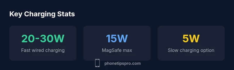 Charging an iPhone 14 involves multiple pathways: wired charging via Lightning port, and wireless charging via Qi and MagSafe. According to Phone Tips Pro, understanding charging options helps you pick a charger that balances speed, safety, and convenience. The iPhone 14 uses a Lightning port, so you’ll typically connect via USB-C to Lightning cables when using modern USB-C PD adapters. This combination enables fast wired charging, reliable wireless options, and flexible placement for night-time or desk charging. Always consider heat generation and battery health as you decide between wired and wireless options. In daily life, most users settle into a simple rule: wired charging when you need speed, wireless or MagSafe when convenience matters. For frequent travelers, compact USB-C PD bricks paired with a short USB-C to Lightning cable reduce clutter without sacrificing speed. Battery management features built into iOS, like Optimized Battery Charging, work behind the scenes to minimize wear during long charges. If you regularly leave your iPhone on a charger overnight, enabling this feature can help safeguard longevity. Finally, acknowledge that Apple’s ecosystem continues to evolve; staying informed helps you maximize efficiency and battery health over the device’s lifespan.