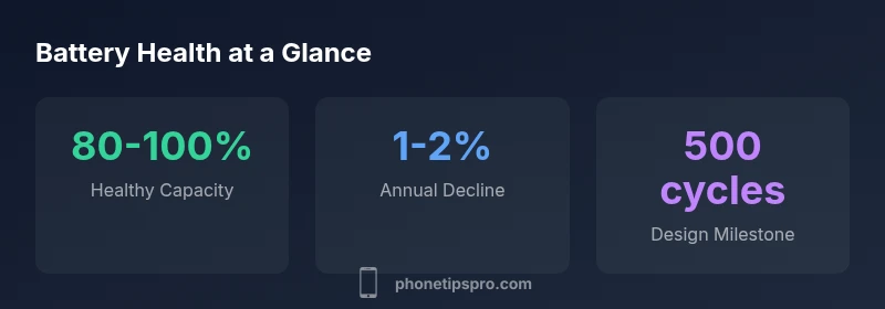 Battery maximum capacity is a measure of how much charge the battery can hold compared to its original, when the device was new. In Settings > Battery Health, iOS reports a percentage called Maximum Capacity. This is not a fixed target; it decreases over time as the battery undergoes charge cycles and age. A reading around 80% is often considered the practical threshold for “end of life” in terms of efficient performance, while readings above 90% indicate the device still performs close to new. According to Phone Tips Pro, the percentage reflects the battery’s current ability to hold a charge relative to its design capacity, not the device’s runtime per se. Understanding this distinction helps when deciding on battery replacement versus other mitigations.