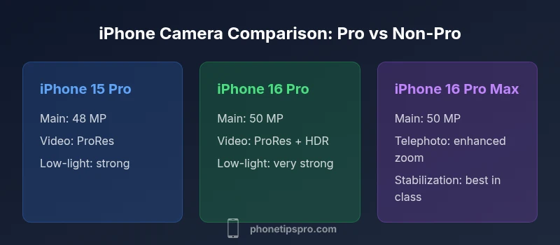 To compare cameras, perform a weekend test with three simple tasks: 1) Shoot a high-contrast scene (sunlight and shadows) to evaluate dynamic range; 2) Capture a low-light indoor scene to judge noise and color accuracy; 3) Record a short video in motion to test autofocus and stabilization. Compare ProRAW and standard JPEG/HEIF outputs if available. Use a consistent exposure and white balance across devices. Finally, review images on a larger screen to assess detail, texture, and color reproduction. This practical test helps you quantify differences and pick the right model for your needs.