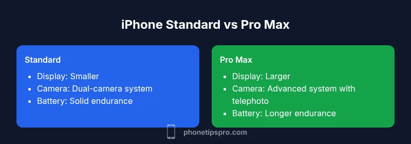 TL;DR: The Pro Max typically offers a larger display, longer battery life, and a more capable camera system, but at a higher price and heavier weight. The standard iPhone delivers a compact form factor, strong everyday performance, and lower cost while sharing most core features. In short, choose Pro Max for premium specs and screen real estate, or the standard for value and portability.