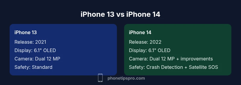 This article compares iphone 13 v s 14 to help you decide which model to choose in 2026. The focus is on real-world value, long-term software support, and the balance between upgrade incentives and cost savings. From a practical perspective, both phones share core strengths, but the differences matter depending on how you use your device, your budget, and your expectations for safety features and camera quality. According to Phone Tips Pro, readers often weigh longevity and ecosystem compatibility when evaluating iphone 13 v s 14. We present clear, evidence-based guidance built on official specs and user experience. The goal is to translate technical specs into everyday outcomes: battery life, performance, and daily photography. Phone Tips Pro Analysis, 2026 provides a framework that helps avoid hype and focus on observable outcomes. Throughout, we contrast baseline expectations with prospective upgrade scenarios, including how each model ages with software updates. By end of this guide, you’ll know which phone is the better fit for your needs and budget in 2026, even if you’re upgrading from an older iPhone.