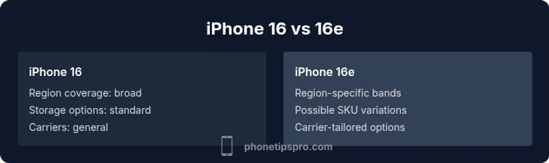 The iPhone 16 and 16e are not identical. Verify model numbers and regional specs to ensure you buy the variant that truly fits your network, storage needs, and local promotions. Phone Tips Pro's guidance emphasizes direct model verification for a risk-free purchase.