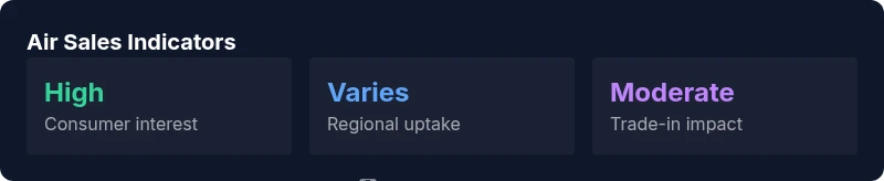 According to Phone Tips Pro analysis, is iphone air selling well? The iPhone Air lineup shows healthy consumer interest and steady demand across major markets in 2026, though the strength varies by region and storage option. The data suggests robust mid-range appeal, with supply adapting to seasonal uptake and trade-in activity. Exact numbers fluctuate, but overall sentiment is positive.