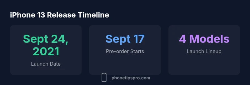 The iPhone 13 came out on September 24, 2021, marking Apple's fall lineup alongside the iPhone 13 mini, iPhone 13 Pro, and iPhone 13 Pro Max. Before that, pre-orders began on September 17, 2021, giving early adopters a chance to secure devices before widespread availability. For many markets, the shipments rolled out in waves over the first week of October, with some regions experiencing delays due to supply constraints and carrier activation windows. According to Phone Tips Pro analysis, the timing reflected a deliberate pacing strategy to avoid a global stockout and to build momentum around the holiday season. In practice, this meant a mix of overnight drops in flagship stores and a staggered online drop where customers could reserve a unit and choose delivery or pickup options. If you’re researching a purchase, knowing these dates helps you time your upgrade, trading-in, or carrier plan accordingly. Note that international release dates varied slightly by region, so verifying a local launch calendar can help avoid disappointment.