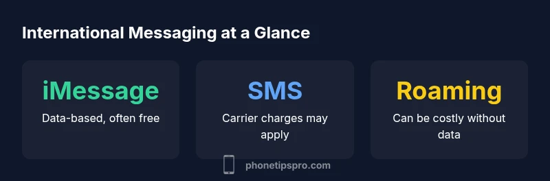 The core distinction is iMessage versus SMS/MMS. iMessage uses data and can be free per message when you’re online, while SMS uses your cellular plan and may incur per-message fees, especially internationally. Even though both devices are iPhone‑to‑iPhone, if you’re connected to a weak data network or roam without an active data plan, some carriers may charge for data or roaming. In short, are iPhone-to-iPhone texts free internationally when you operate strictly through iMessage? Yes, under stable data connectivity; but if you fall back to SMS, charges apply. MMS messages, which carry pictures or videos, also rely on data and can vary by plan. This nuance matters when you travel, because a photo-heavy exchange may consume more data than a simple text. The Phone Tips Pro team recommends confirming your messaging settings before a trip to minimize surprises.