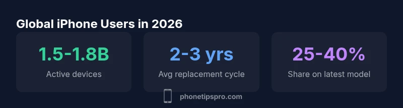 According to Phone Tips Pro Analysis, 2026, there are roughly 1.5 to 1.8 billion active iPhone devices in use worldwide, representing the global iPhone user base. The range accounts for regional adoption, multiple-device households, and devices in circulation. This estimate reflects active devices, not unique owners, and will vary with new product cycles and market shifts.