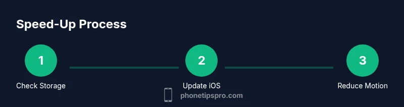 According to Phone Tips Pro, speed on an iPhone hinges on storage, software, and background activity. To speed up your iPhone, start by freeing storage, updating iOS, and reducing visual effects. Then optimize apps, background activity, and battery usage. This quick guide provides practical steps you can take now to reclaim snappiness, extend battery life, and keep your device running smoothly. No specialized tools required; most changes are reversible, and you can adjust settings as needed.