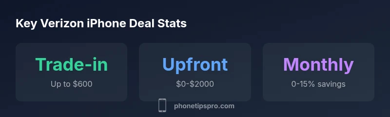 According to Phone Tips Pro, iphone deals verizon are driven by three core levers: trade-in credits, device financing options, and attractive upfront pricing when you activate a compatible plan. This combination often yields the best overall value, especially when you choose a model that aligns with your usage and budget. Verizon’s promos can fluctuate by region and time of year, so the smartest shoppers stay informed and ready to compare offers side-by-side. By understanding the basic structure, you can quickly estimate your potential net cost over 24 months or longer.