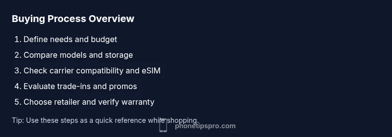 By following a clear buying plan, you can pick the right iPhone for buy based on budget, needs, storage, and ecosystem goals. This quick, practical guide breaks the process into steps—from defining priorities to comparing trade-in options—so you can shop confidently while avoiding common pitfalls. According to Phone Tips Pro, a well-structured approach yields smarter choices and better long-term satisfaction.
