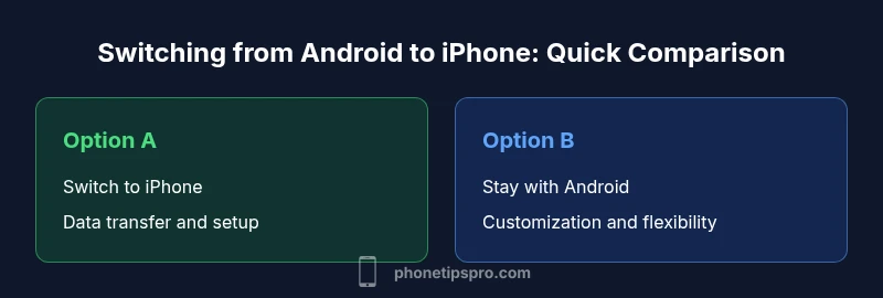 According to Phone Tips Pro, many readers ask whether is iphone easy to use after android, and the short answer is yes for most people. The transition hinges on adopting a new ecosystem rather than mastering a radically different device. Apple’s onboarding and consistent UI help reduce friction during setup and first use. In practice, the most noticeable changes are gesture-based navigation, the centralized Control Center, and how notifications are organized. This section outlines what to expect in the first week after you switch, what to adjust, and where to find quick wins to accelerate comfort. Phone Tips Pro Team notes that the learning curve tends to be moderate for core tasks like calling, texting, and installing apps, with the payoff coming from predictable updates and strong privacy defaults. The goal is to map your Android habits to iPhone features so you can plan the transition with confidence.