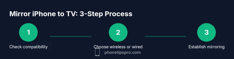 Mirror iPhone screen on TV is a simple way to share photos, videos, presentations, or apps on a larger display. The core technology behind most modern setups is AirPlay, Apple's wireless streaming protocol, which works with Apple TV and many AirPlay‑2 compatible TVs. If your TV supports AirPlay 2, you can mirror wirelessly without any extra hardware. If not, you can still mirror using a wired adapter. The Phone Tips Pro team emphasizes that a stable connection and compatible devices are the two most important factors for a smooth experience. In practice, you’ll typically choose between wireless AirPlay and wired HDMI connections depending on convenience, latency tolerance, and whether you’re presenting in a professional setting. Additionally, you should consider the content you want to mirror; some apps restrict display to prevent piracy, and DRM content may not mirror in high quality. With the right setup, mirroring becomes a seamless way to share everything from photos to live demos.