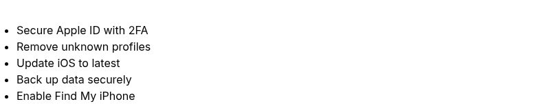 - mediumRemove unknown profiles/apps; update iOS; run trusted malware checks