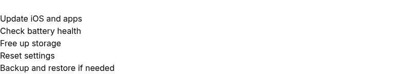 Maintain regular software updates, monitor battery health, and manage storage proactively. Enable Low Power Mode during heavy usage or long days away from accessories. Minimize background refresh, large downloads, and graphics-intensive apps when battery is low. Regularly restart after major updates to ensure clean state. Keep the device cool during charging and avoid using the phone in direct heat. These habits reduce the likelihood of recurring problems and extend device longevity.