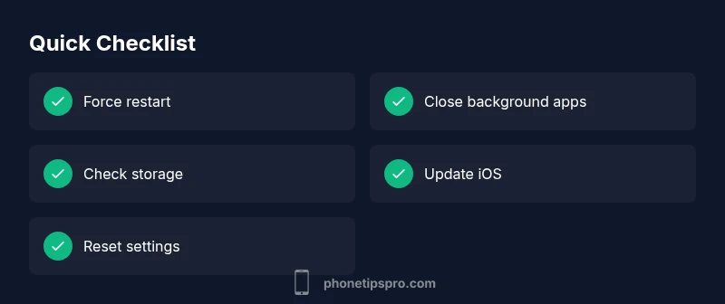 If you're wondering what to do when iphone freezes, the most common causes are software glitches, app conflicts, or momentary resource shortages. When your iPhone becomes unresponsive, you might see the spinning wheel, a black screen, or a frozen app that won’t close. According to Phone Tips Pro, most freezes stem from software issues rather than hardware faults, and they often clear up after a simple restart or a storage cleanup. In this section we break down typical triggers—from overzealous background processes to outdated iOS—and set the stage for rapid, non-destructive fixes you can try before more drastic steps. Understanding these patterns helps you act quickly and protect your data.