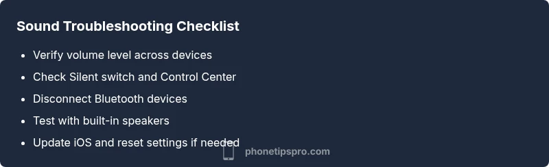 Most often, low iPhone sound results from a muted or low volume setting, a connected Bluetooth device, or a software glitch. Quickly fix by raising volume with the side buttons, using Control Center, ensuring Silent mode is off, and disconnecting Bluetooth. If the issue persists, follow the diagnostic flow below in the BODY section for deeper checks.